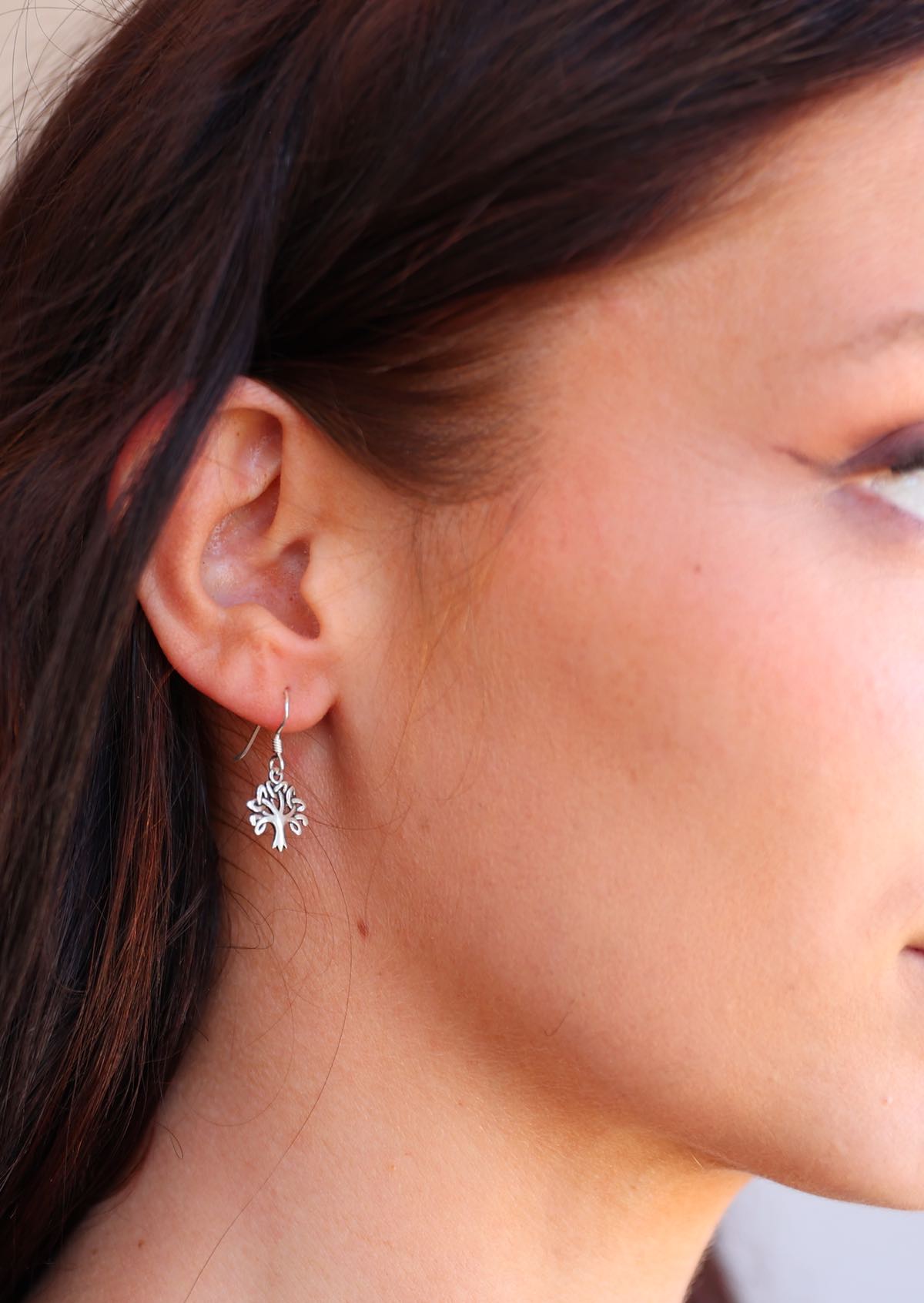 The Celtic Tree Silver Earrings are a great addition to the jewellery box. Crafted from sterling silver, features intricate details, and is suspended from a hook, these earrings will add a touch of charm to any outfit. Measuring 10mm in width at the base, and 22mm long, including the hook.