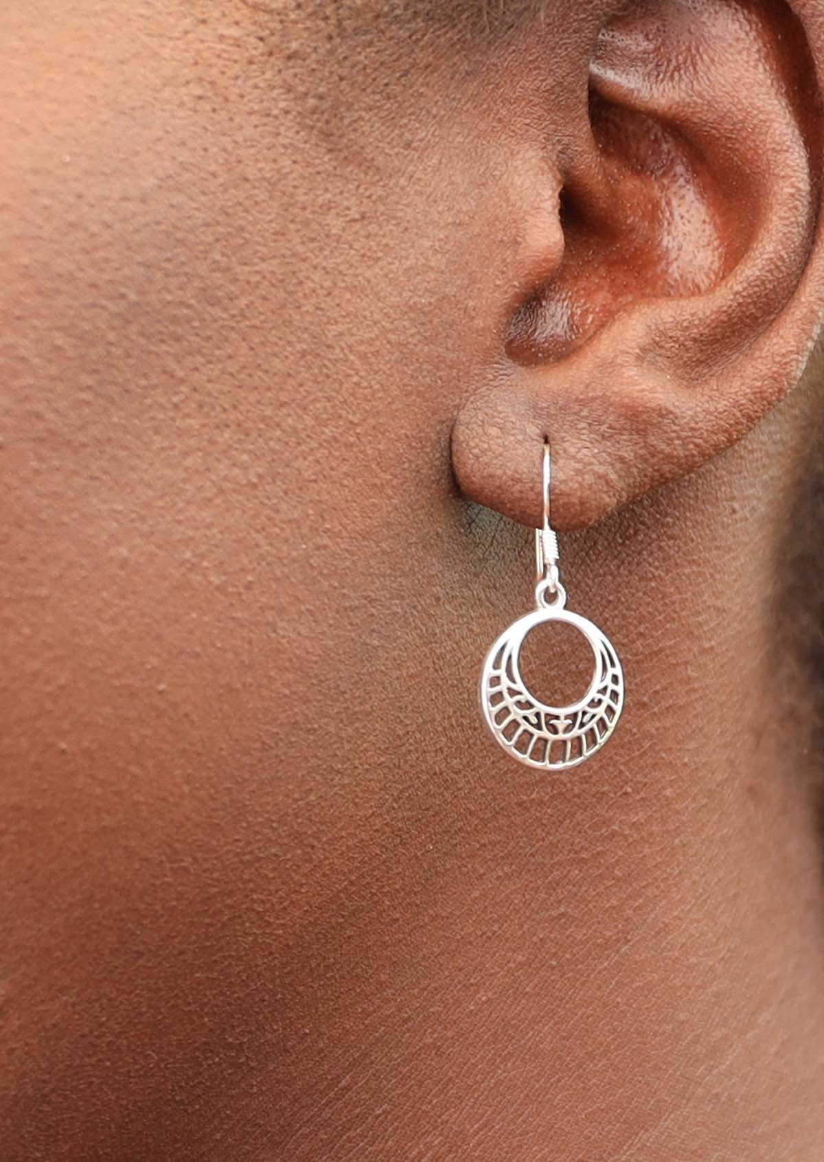 Divine Disk Silver Dangle Earrings.