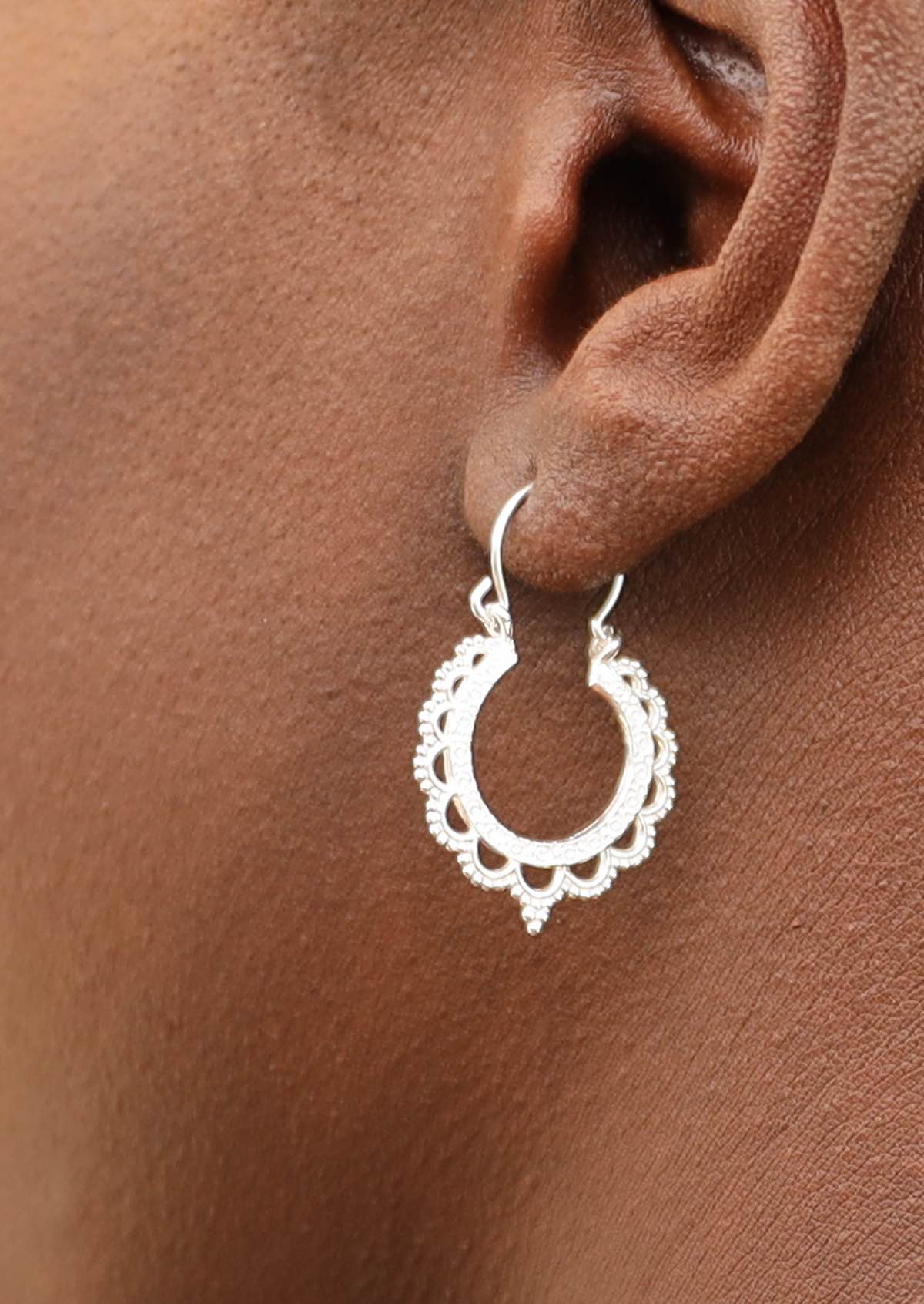 Layered Lace Silver Hoop Earrings